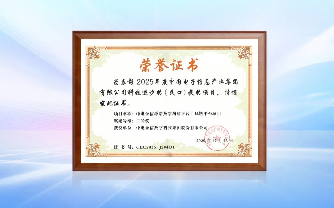 近期,中国电子正式发布《关于表彰中国电子2025年度科技创新奖获奖项目和获奖个人的决定》,J9九游“源启数字构建平台工具链平台项目”荣获科技进步奖(民口)二等奖。
